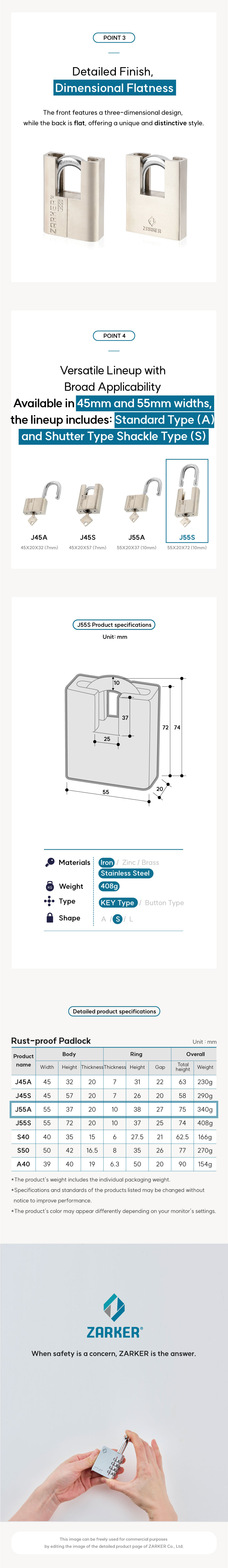 J55S ZARKER® Rustproof Padlock