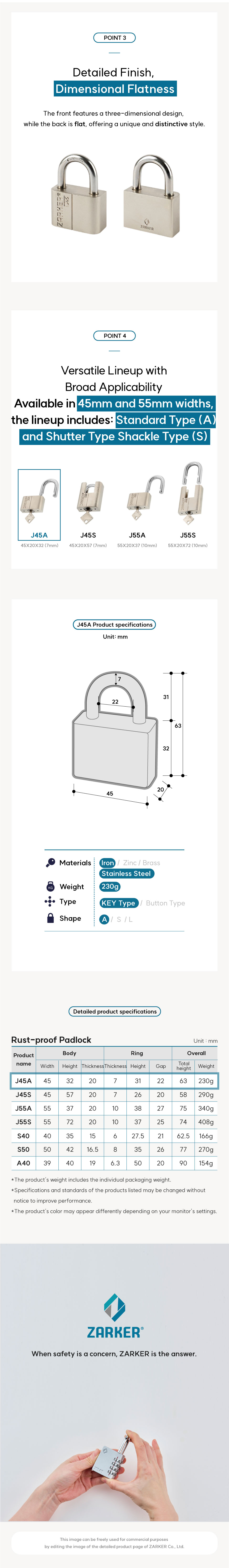 ZARKER J-Series is a disk-type lock that provides excellent security and rust prevention.