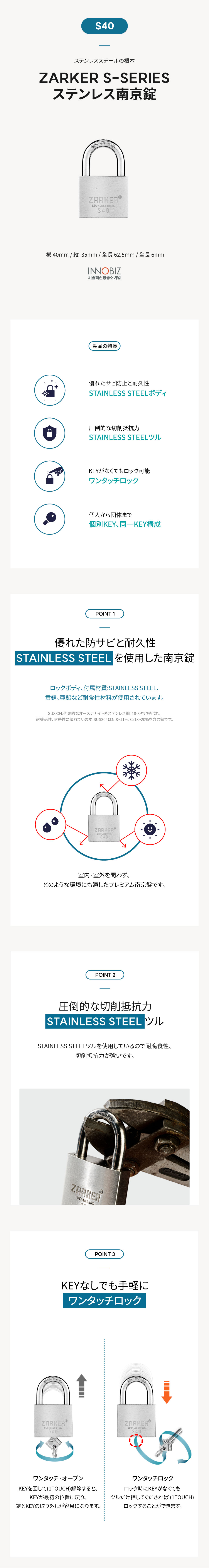 S40 ZARKER® ステンレス南京錠