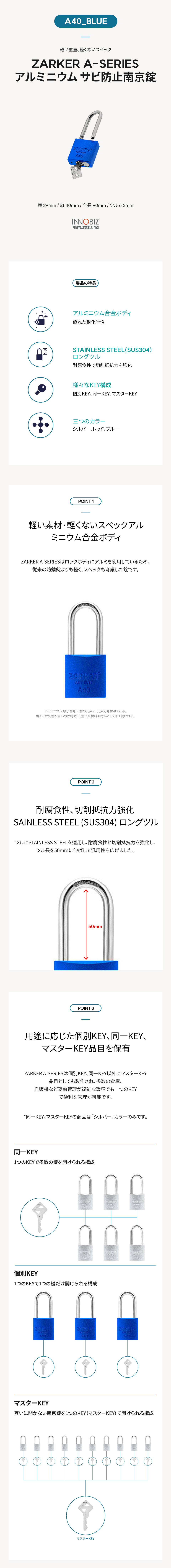 - 次の文A40 ZARKER® サビ防止アルミニウム南京錠 24.06.13