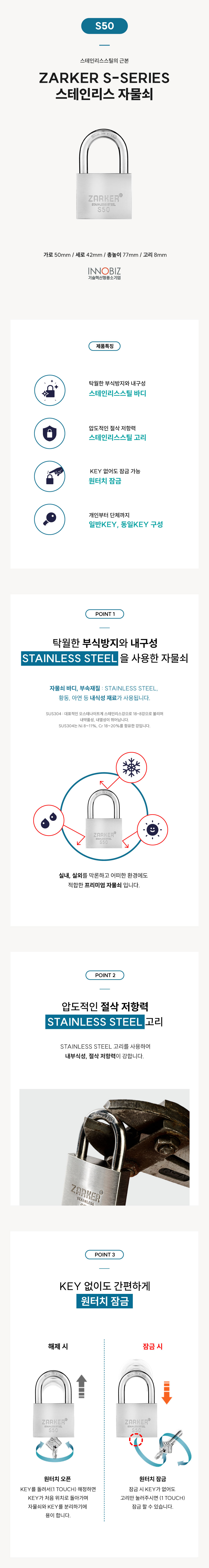 문의하기㈜자커 S-시리즈는 부식에 강한 부식방지 전용 자물쇠입니다.