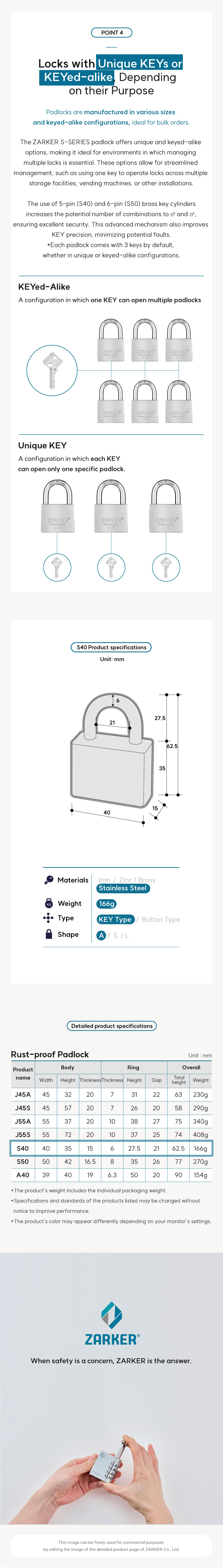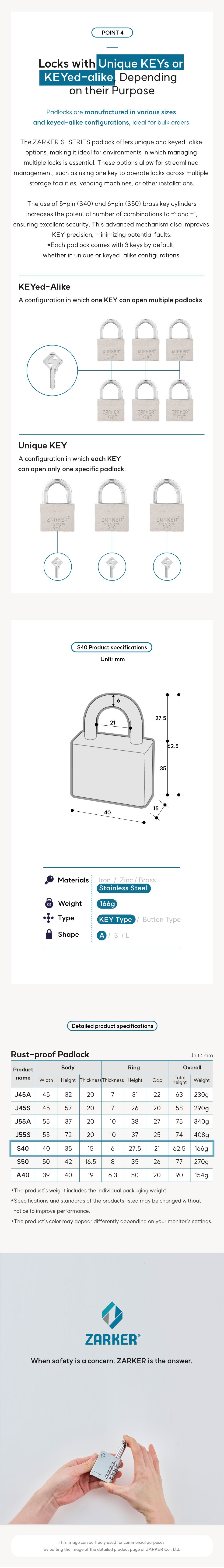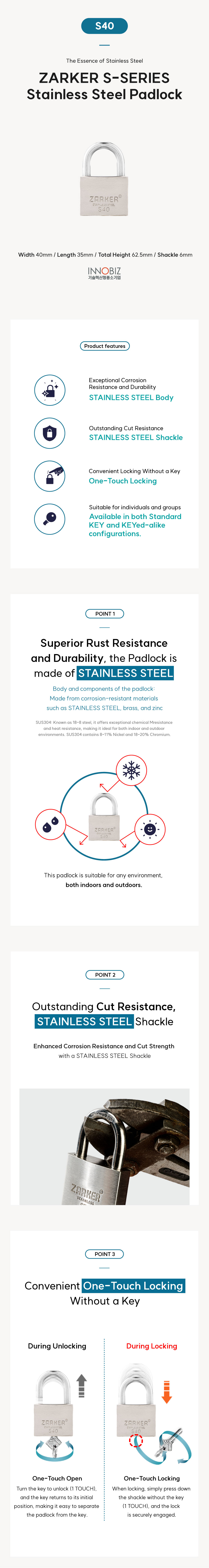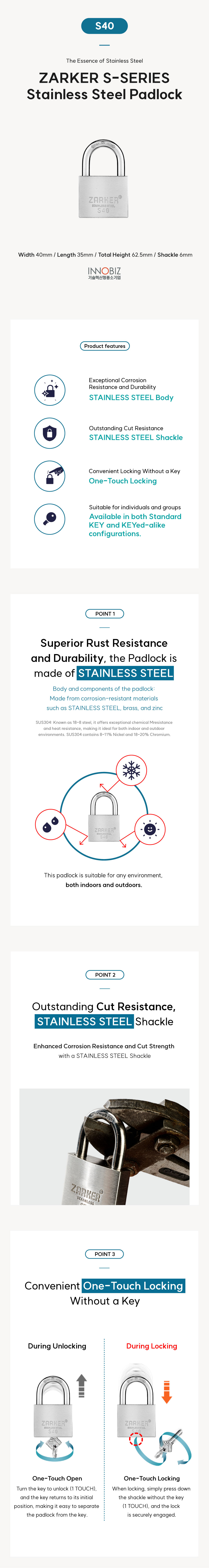 ZARKER S-Series is a dedicated rust-proof lock that is resistant to corrosion.