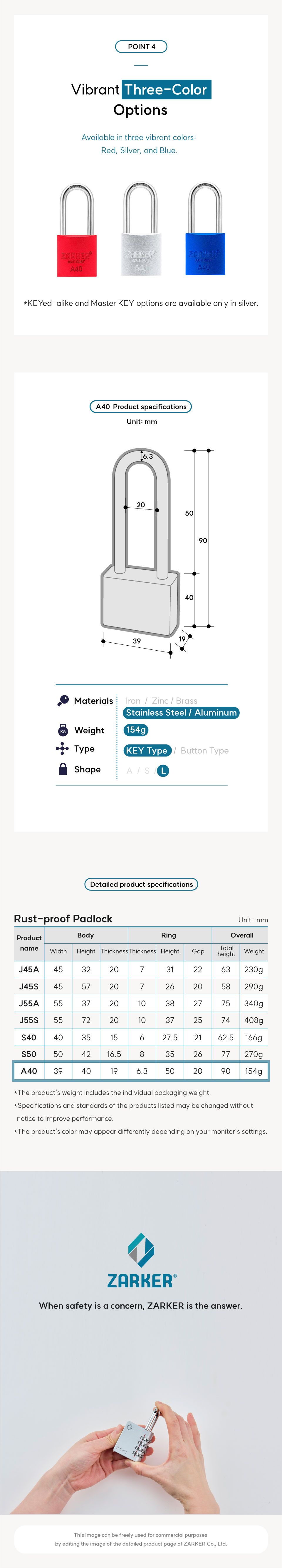 To inquireZARKER A-Series is a specification-conscious lock that uses aluminum as the lock body, making it lighter than traditional rust-resistant locks.