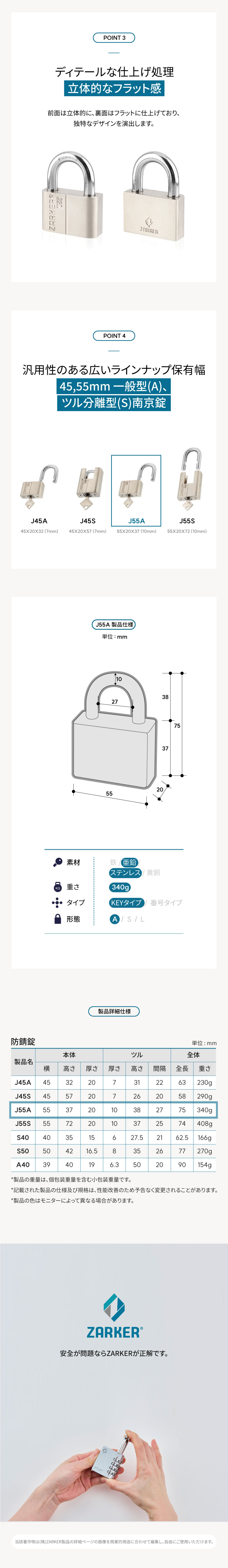 J55 ZARKER® サビ防止専用南京錠