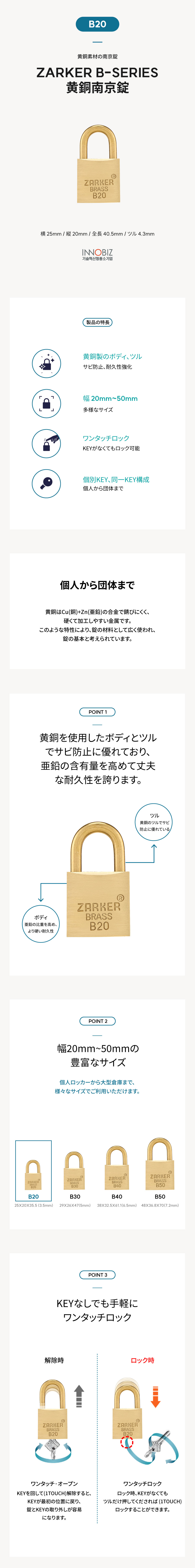 問い合わせ(株)ZARKER B-シリーズ黄銅材南京錠のツルを適用した南京錠です。