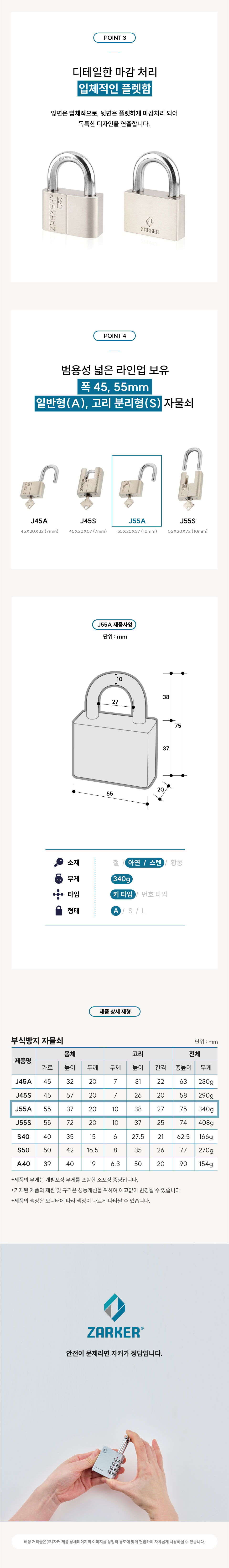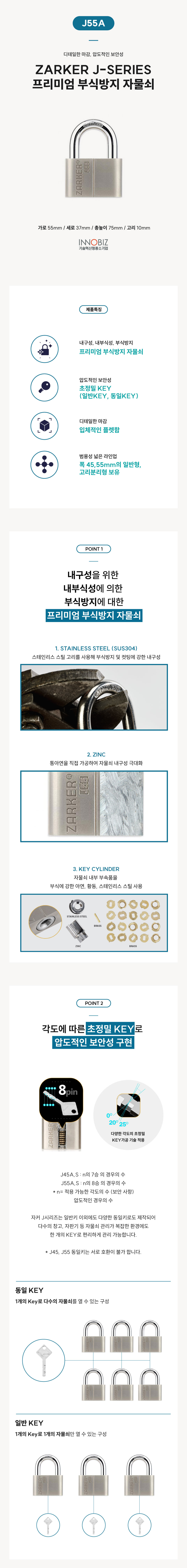 ㈜자커 J-시리즈는 디스크타입의 자물쇠로 보안성과 부식방지에 뛰어난 자물쇠입니다.