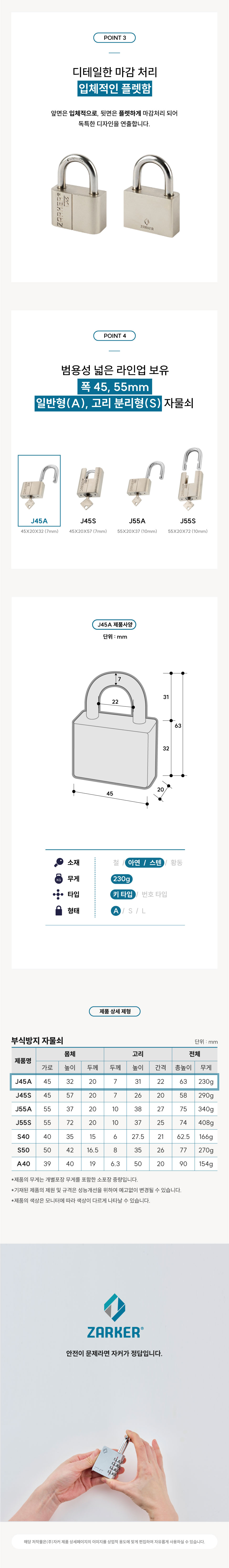 ㈜자커 J-시리즈는 디스크타입의 자물쇠로 보안성과 부식방지에 뛰어난 자물쇠입니다.