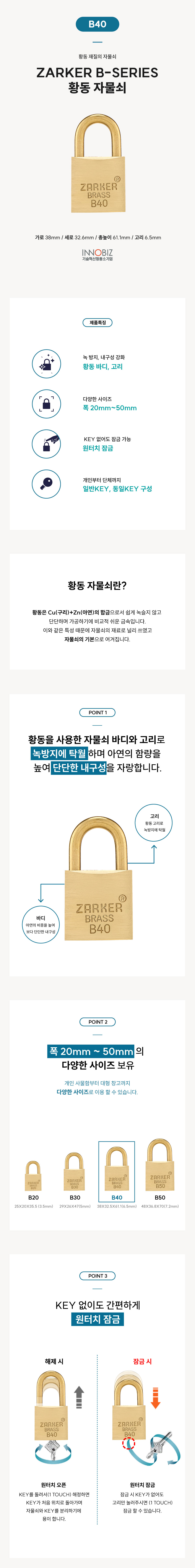 ㈜자커 B-시리즈 황동재질의 고리를 적용한 자물쇠입니다.